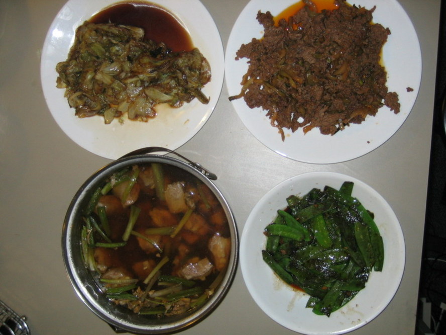 Here is what I made this week. I picked some easy to make dishes so that I can cook them quickly. This week's dishes took me 57 minutes to make. I cooked them fast because they don't require much preparation. Except for the snow peas where I had to take off hard to eat edges from each one of them by hand. I fried two dishes at the same time while boiling the pork ribs. <li>[url]Snow Pea Stir Fried[/url]</li> <li>[url]Boil Pork Ribs[/url]</li> <li>[url]Ground Beaf and Szechuen Pickled Vegetables[/url]</li> <li>[url]Lettuce Stir Fry[/url]</li> ![]()