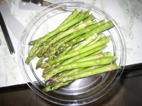 You can steam a lot of things with microwave oven. You can buy a steam bag but you can also make your own by just using plastic food wrapping. What I like about asparagus is they are easy to prepare and taste very good after streaming.